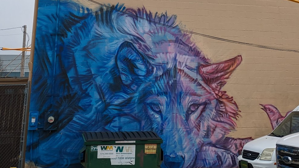 South Bend is a small city heavily inflected by the presence of Notre Dame towards its northern edge. Notre Dame and South Bend are technically different cities. I’ve heard it suggested that the university’s unwillingness to pay tax dollars to the city has something to do with this arrangement. But the City of Notre Dame is an entirely surrounded enclave of South Bend, putting me in mind of The Vatican within the limits of Rome. There is some degree of cross-contamination: my University of Notre Dame Employee ID, and Róisín’s University of Notre Dame Spouse ID, mean we can use the city buses for free. It’s not hard to get out of town(s), if you’ve a mind to. The South Shore Line train to Chicago runs several times a day and costs just fourteen bucks each way, although it takes a while as the central section of the line is being upgraded so you have to get off the train at Gary, onto a bus for twenty minutes, and then back on the train at Dune Park. Chicago is across one state line, into Illinois, which is in the central time zone. The state line and time zone line don’t quite align: the first county before the border is on Central Time too. But South Bend, like most of Indiana, is in the Eastern Time Zone. The nearest part of Lake Michigan is less than an hour’s drive away, and depending exactly which bit of the shoreline you aim for, may take you across a different state line, into Michigan. Róisín and I have made both of those trips, but no others, yet, since we arrived in South Bend just after Christmas.